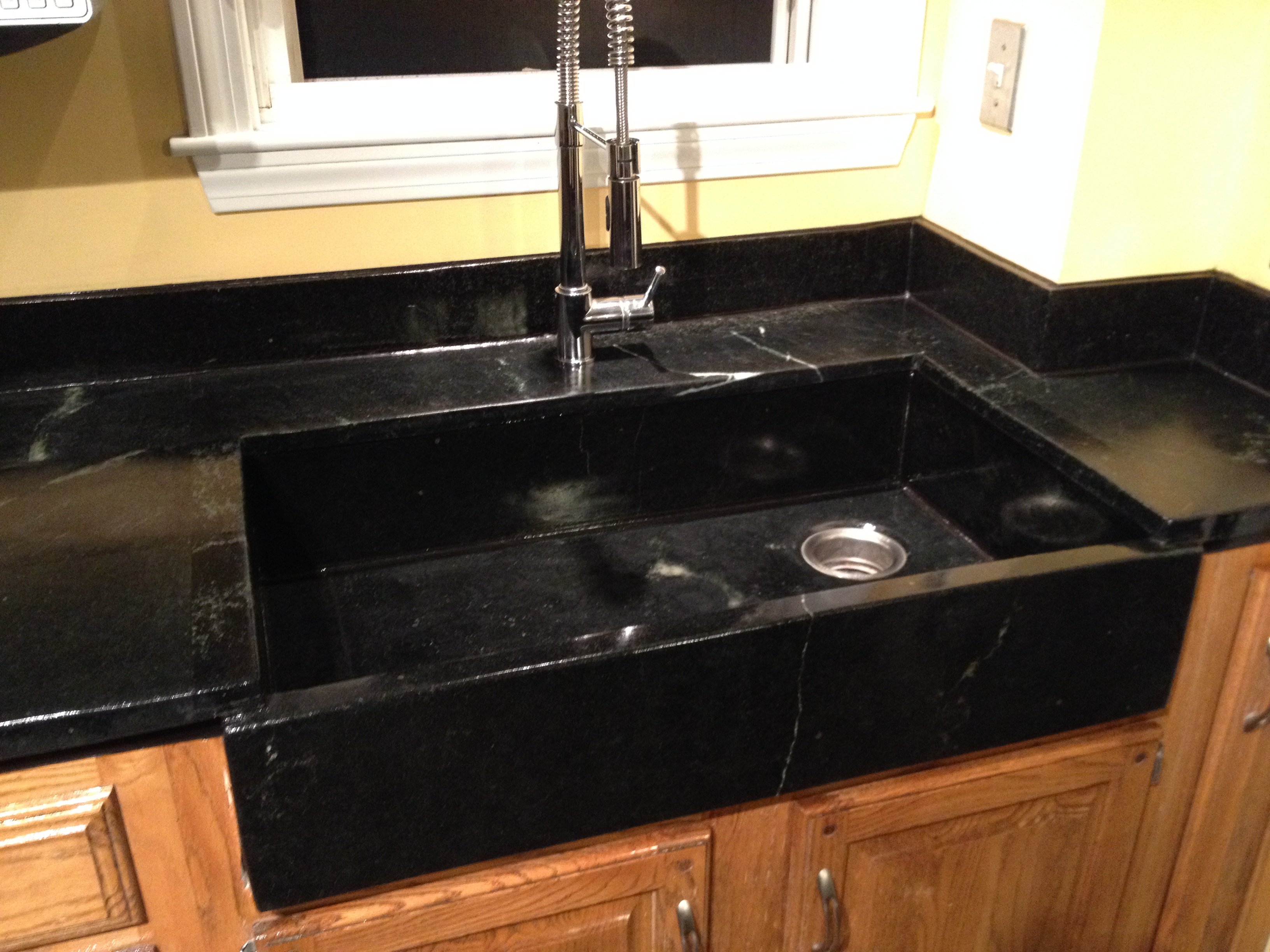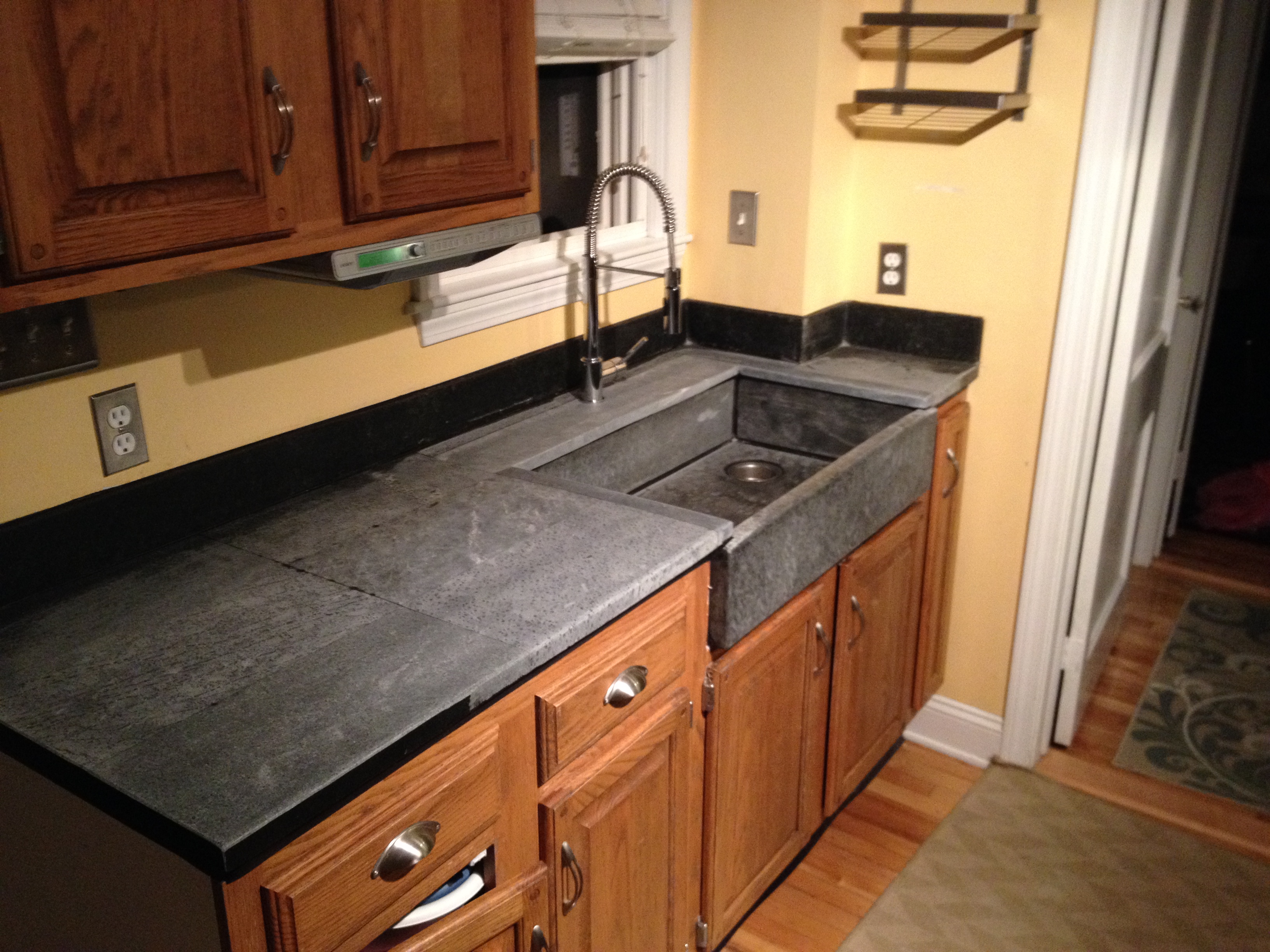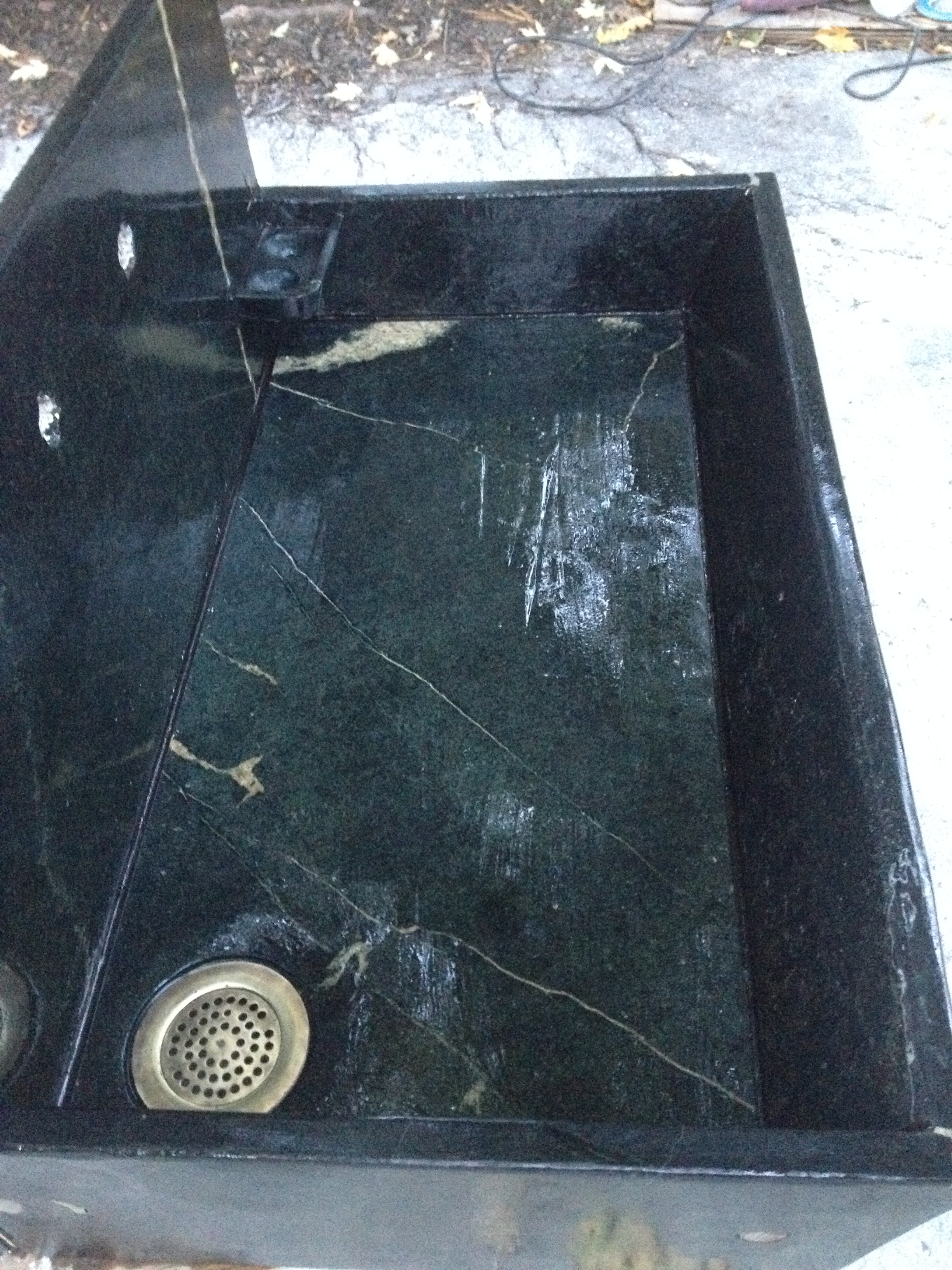 This is the nicest sink I’ve restored. Before and after pics. I made sure the whole thing was clean and then brought to 200+ grit then sealed with black silicone the with oil, My own 100 year old refinished all brass drain too. This is high-end Alberene stone. Yes, it’s the sink below in the blog under “Ooh what will this look like”? covered in lead paint etc. Thanks. Eric, 508 826 9981.