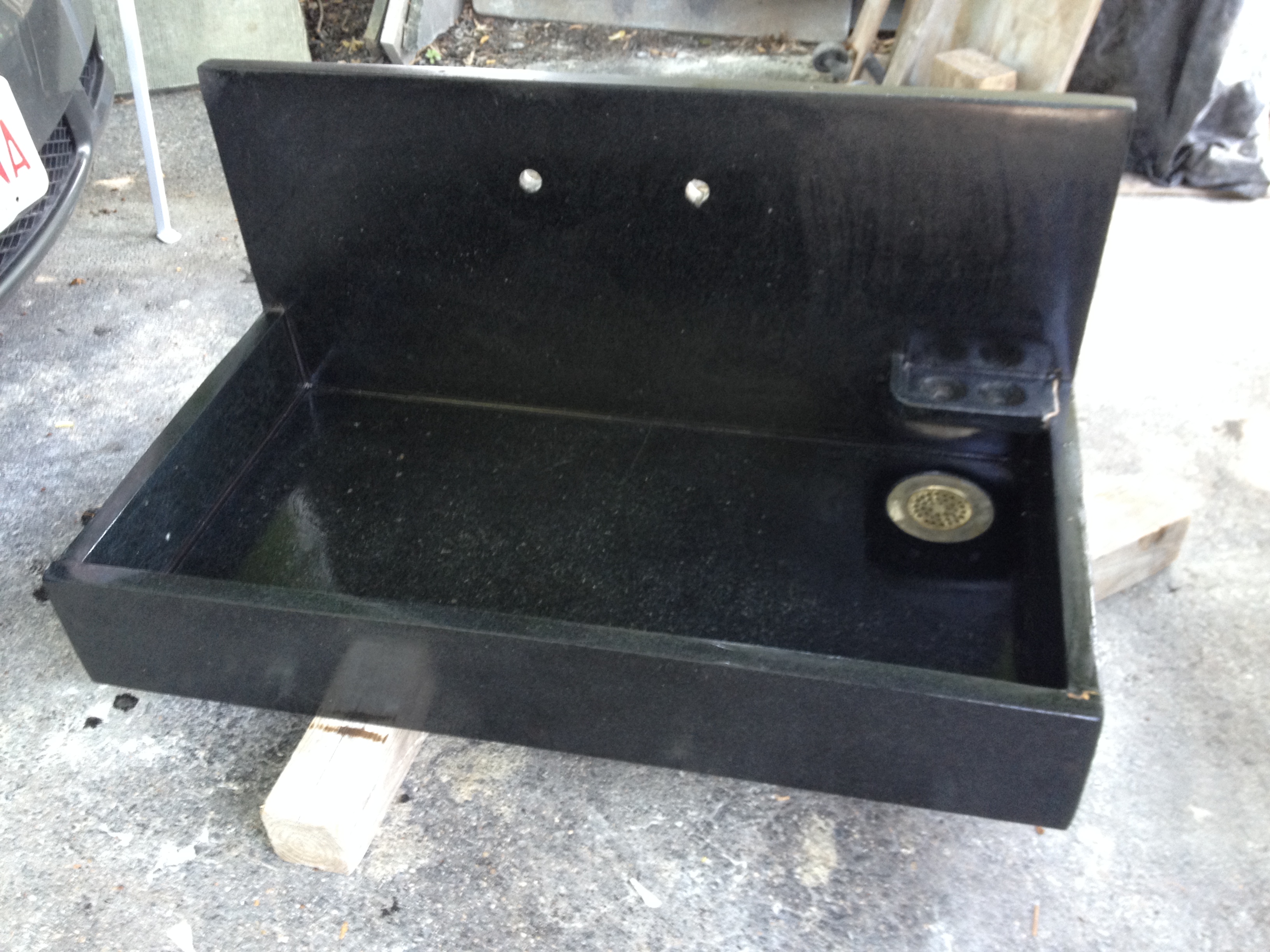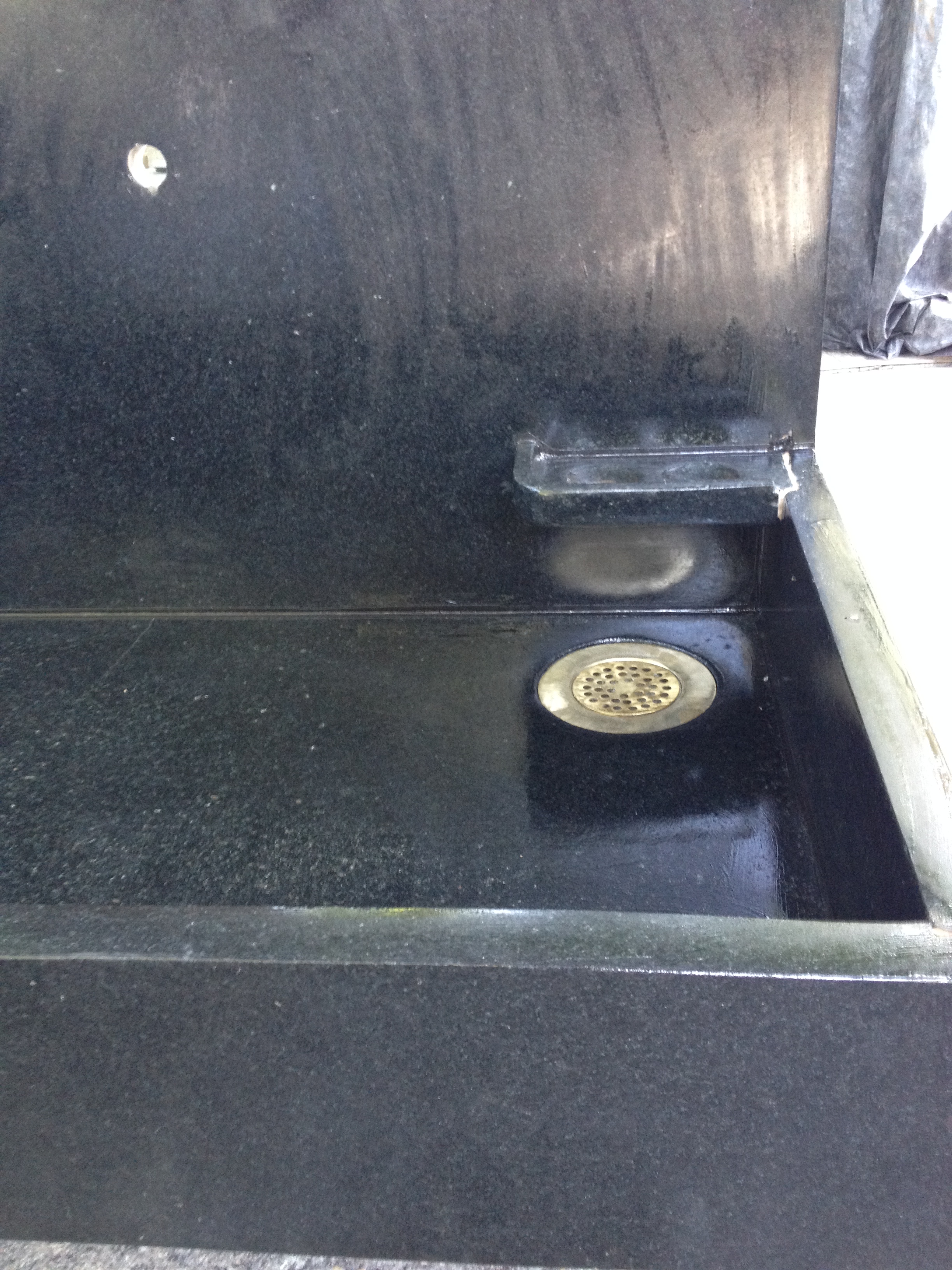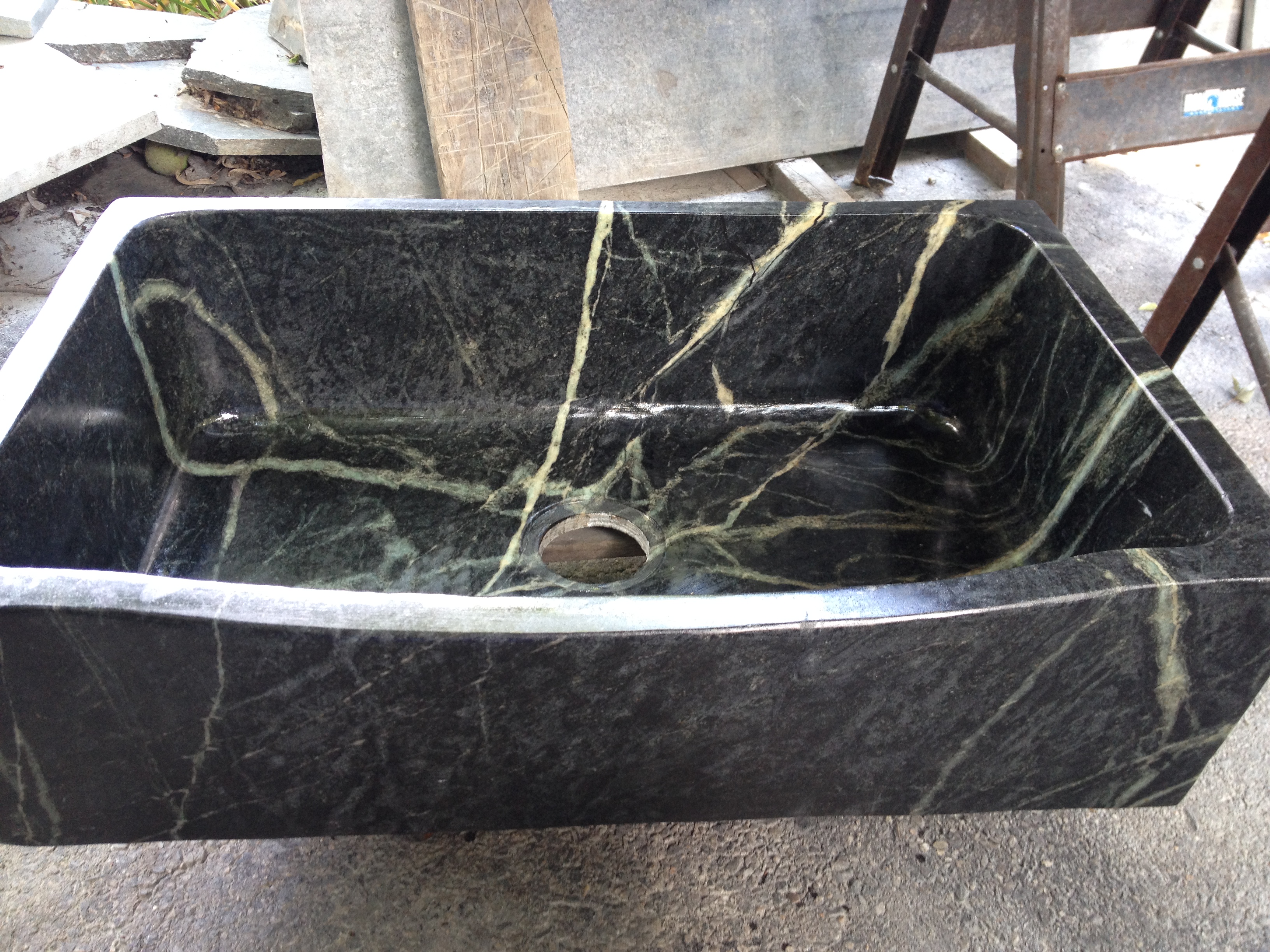 Striking, soapstone block sink. Usually over $2000…this sink was broken right in half and needed to be repaired and resurfaced. Can you see the seam?