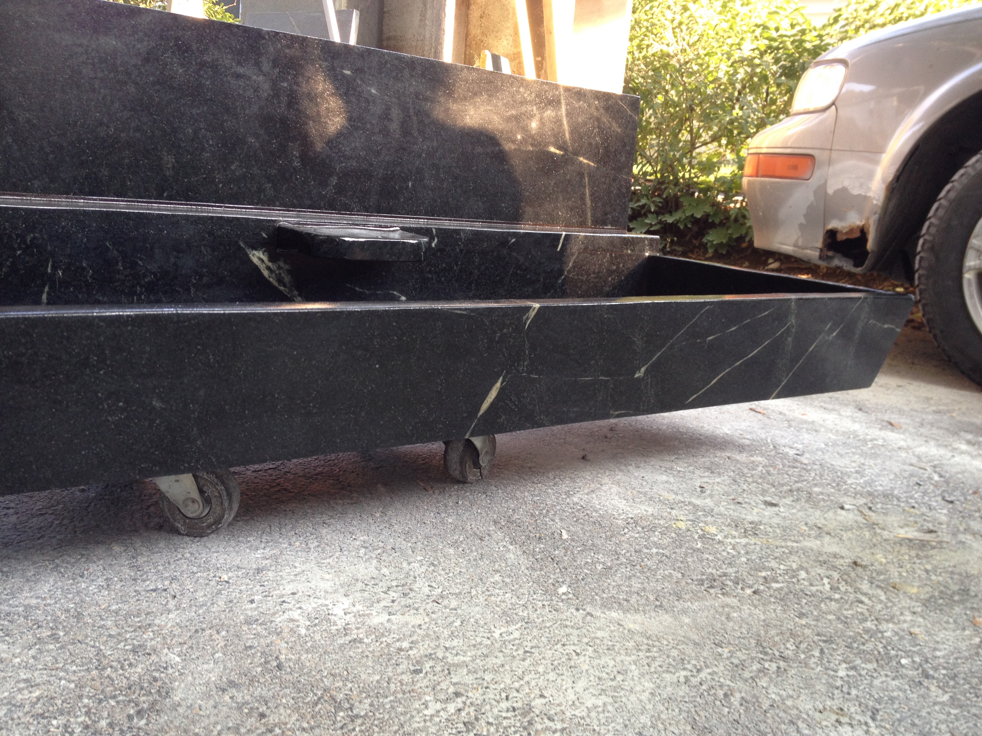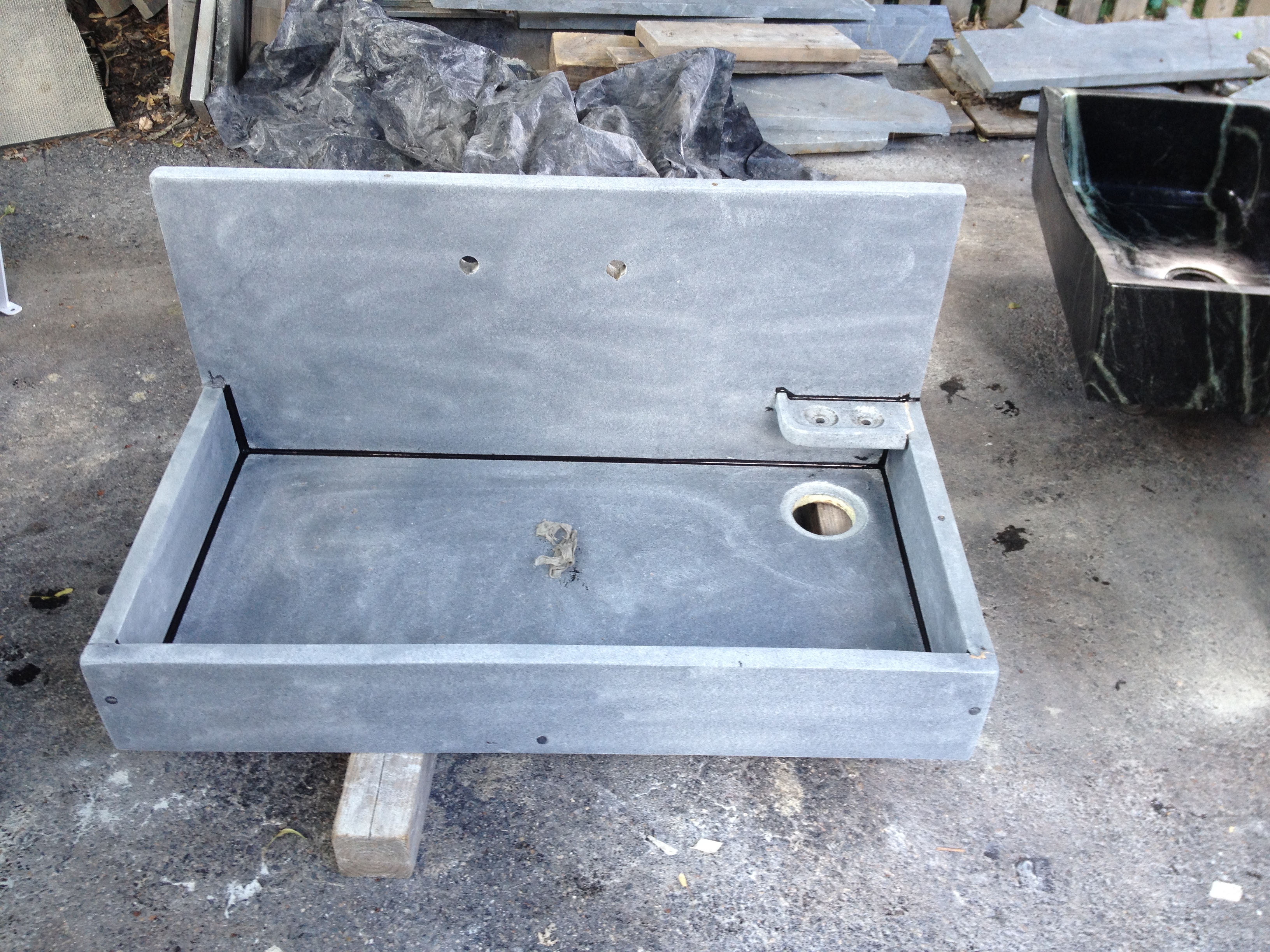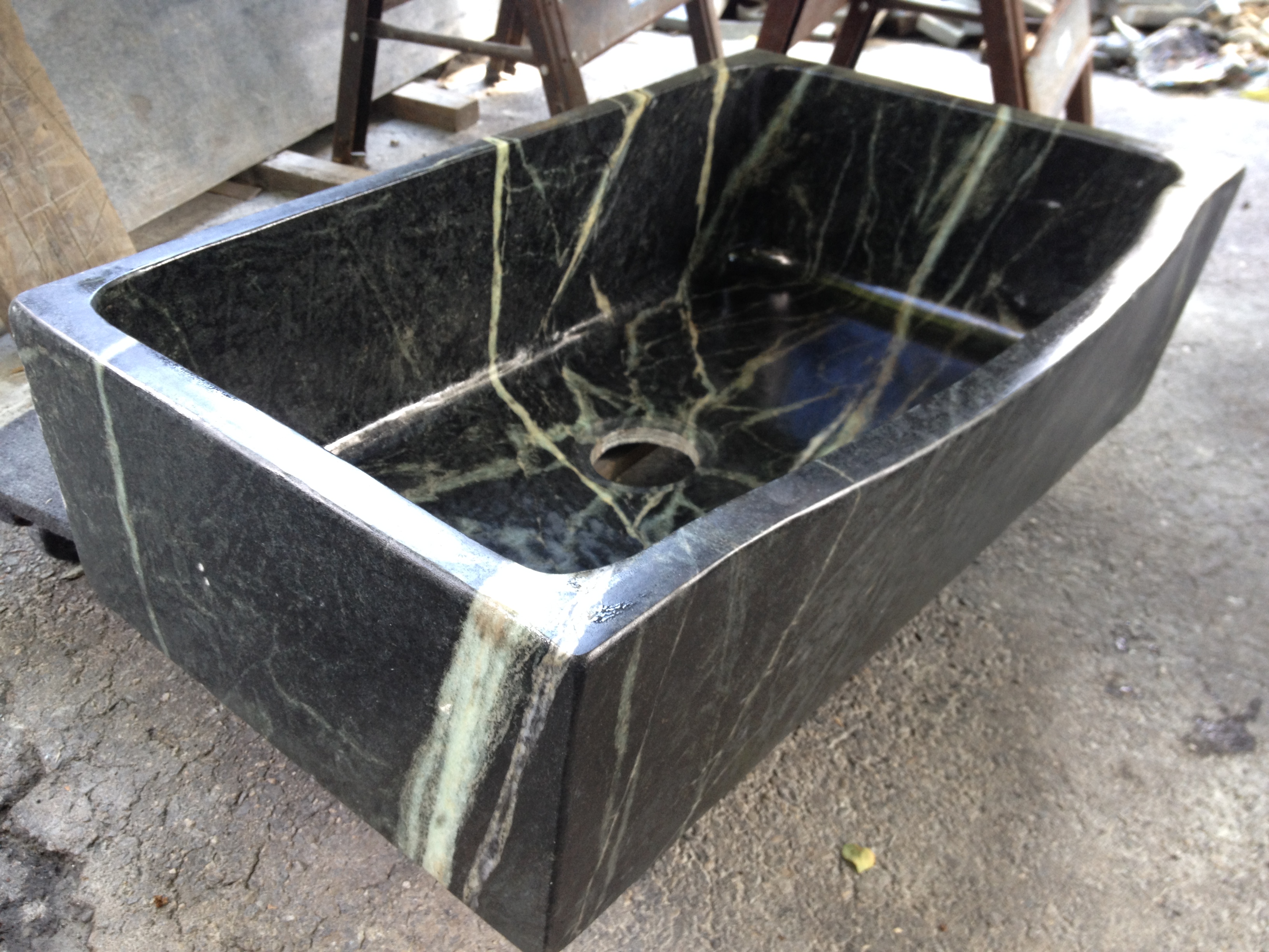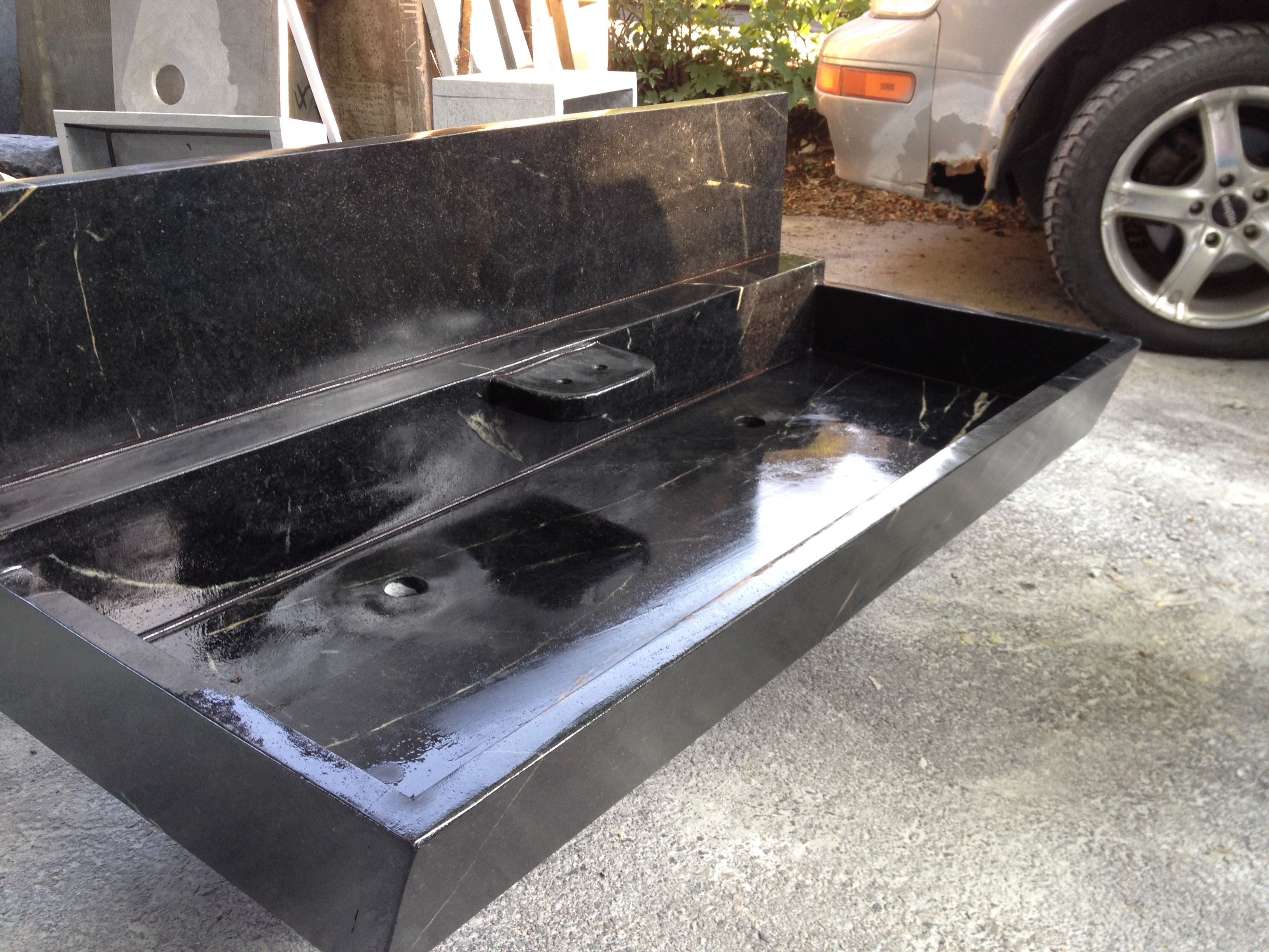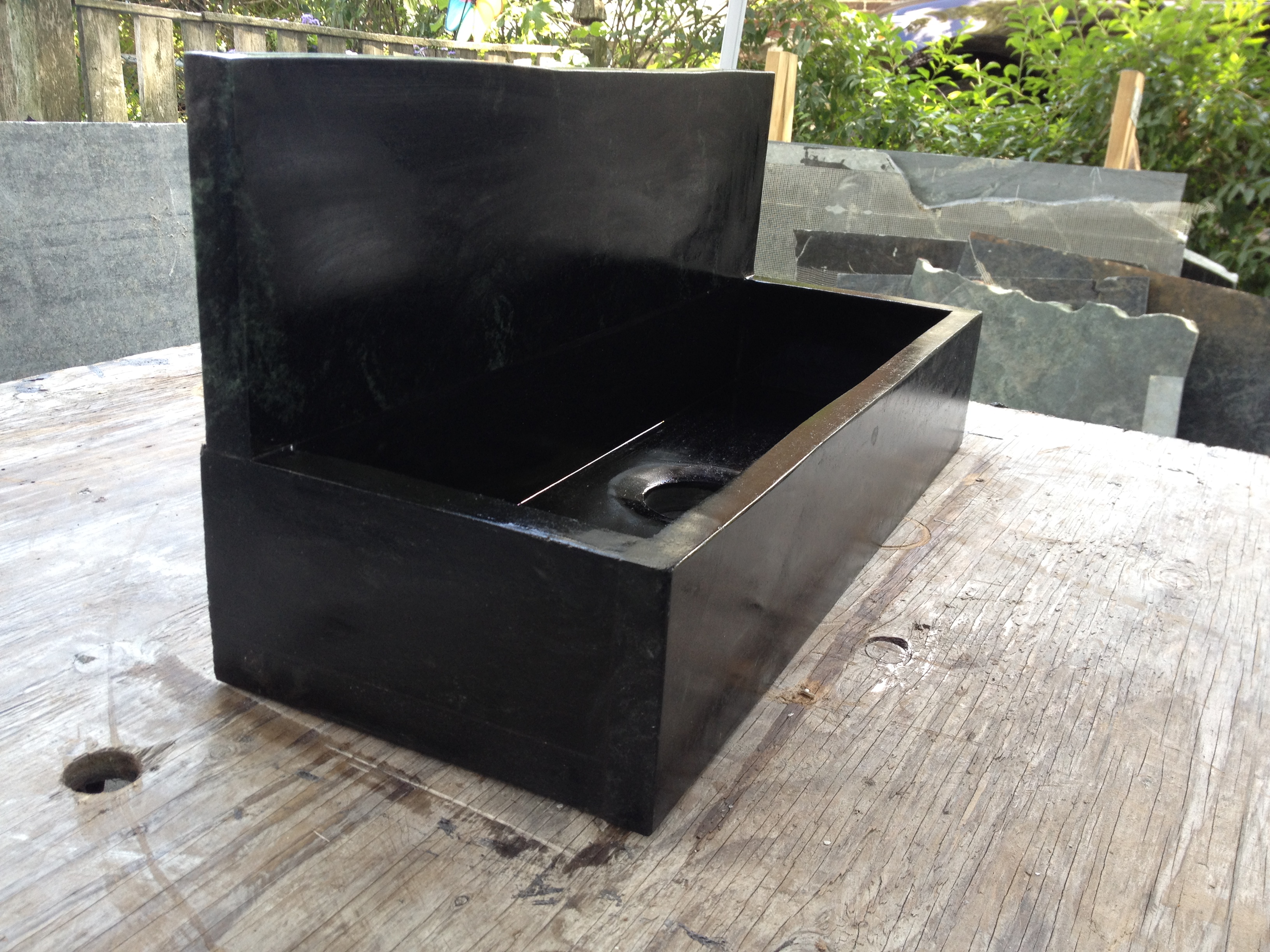 Made from a single block of soapstone, no seams like a normal soapstone sink. It takes a machine 10 hours to mill out the block. Finished on all 3 sides.