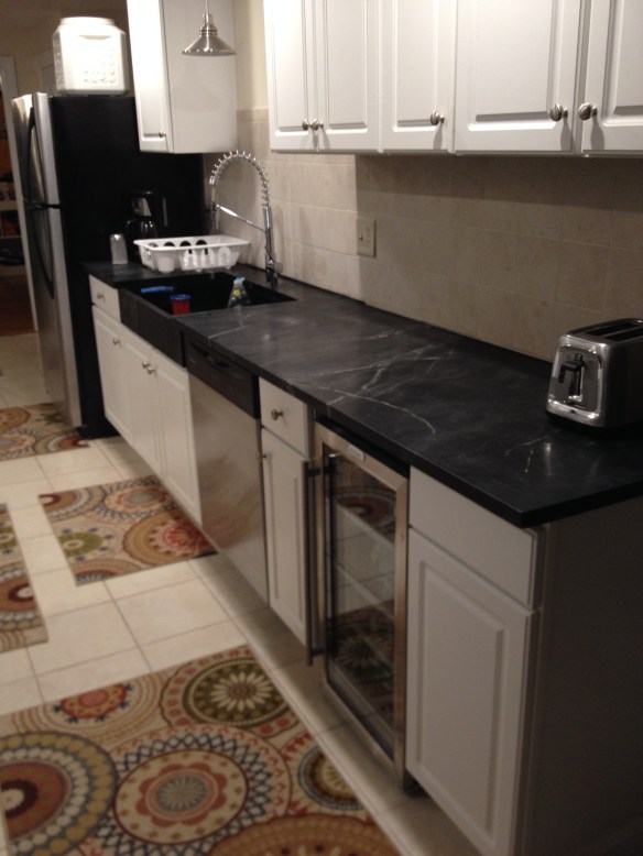 Still working on the kitchen. Posted on January 19, 2017 by Artistic Soapstone, Incorporated Recently cut out the wall of tile, painted, put in new outlets and plugs and wall plates and stainless splash guard, added 5 inch backsplash and a new faucet to the kitchen. Changes the space. Before and after. Share this: Click to share on X (Opens in new window) X Click to share on Facebook (Opens in new window) Facebook Like Loading...