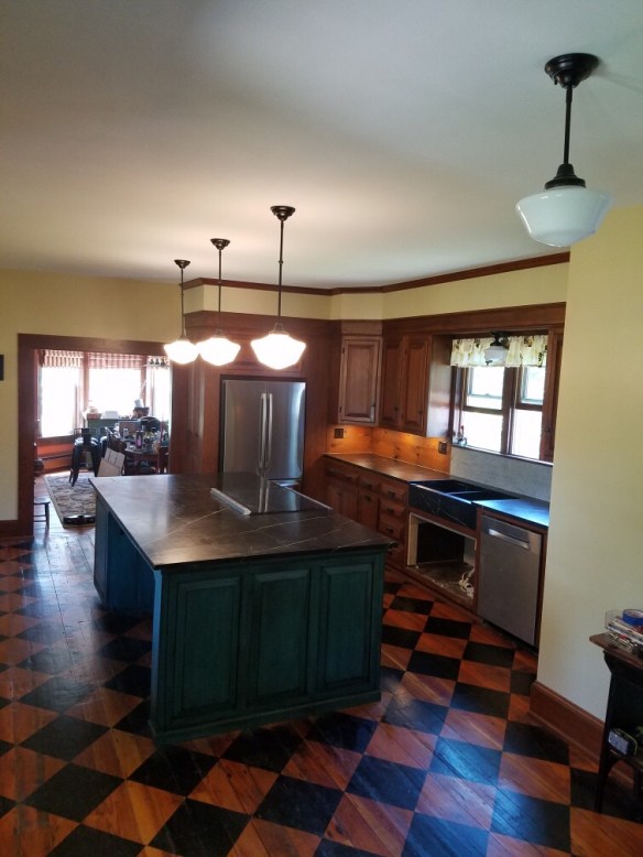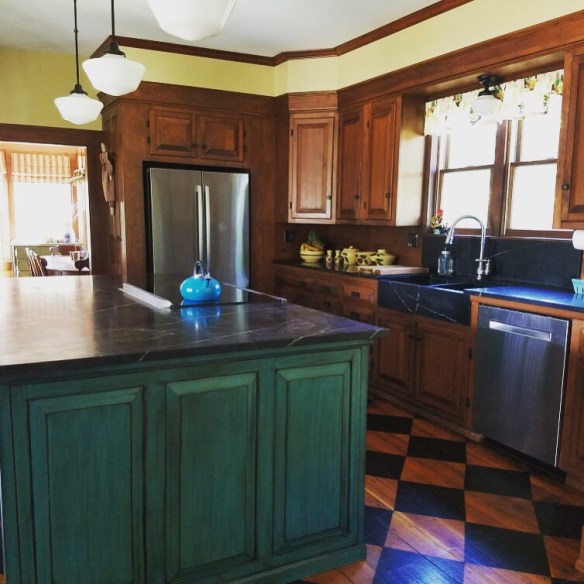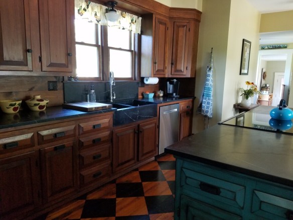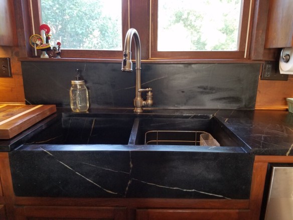 Custom double basin sink with 8 inch faux front. Island is almost 10 ft x 5 ft.