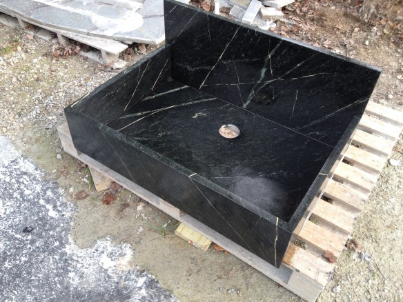 Here is an example of a DIY job that will save the owner tons of dough. We met at Dorado soapstone for them to pick out their two slabs and I cut all of their pieces to size or just to width so they can trim to length during installation. The island is enormous 76×54. The owners are going to hire a couple of movers to bring that in their house. Pretty smart.